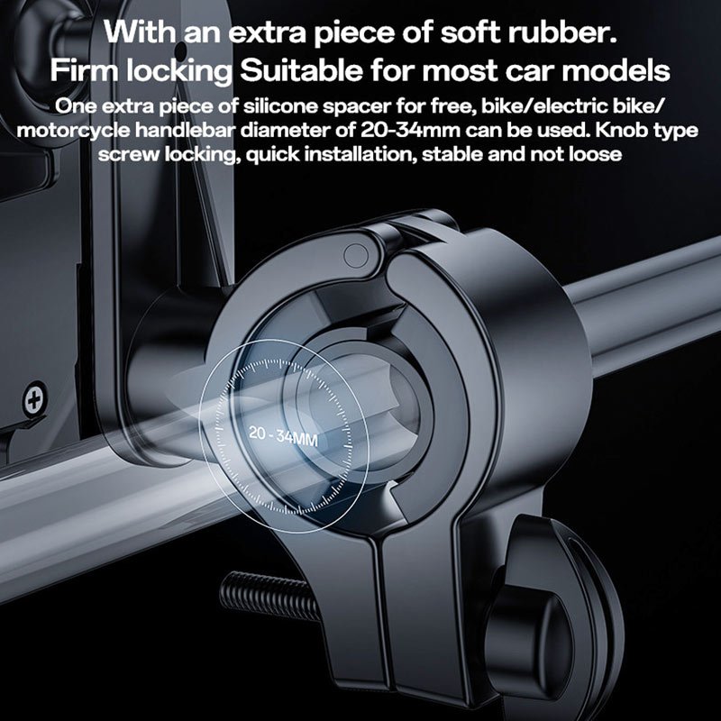 این محصول یک **نگهدارنده (هولدر) تلفن همراه** است که به طور خاص برای استفاده روی **فرمان موتورسیکلت، اسکوتر و دوچرخه** طراحی شده است. وظیفه اصلی آن، نگهداری ایمن و محکم گوشی شما در حین حرکت است.