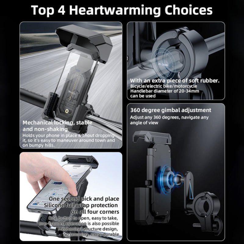 نگهدارنده موبایل مناسب موتور و دوچرخه، همراه همیشگی شما در سفرهای هیجانانگیز! با قابلیت چرخش ۳۶۰ درجه و قفل ایمن، موبایلتان را در هر شرایطی محکم نگهدارید و با خیالی آسوده از مسیر لذت ببرید. طراحی ضد لغزش و مقاوم در برابر لرزش، بهترین انتخاب برای ماجراجویان حرفهای!
