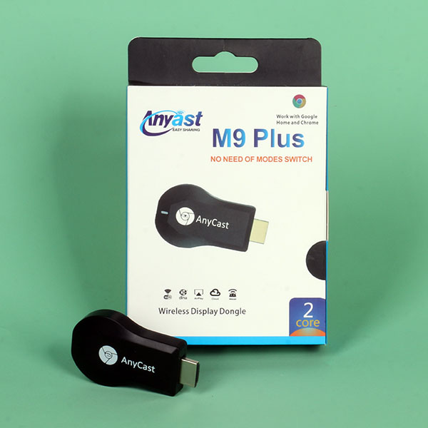 دانگل HDMI مدل M9 Plus ، در ابعاد 67x38x13 mm از یک بدنه پلاستیکی مشکی رنگ و شکیل و زیبا ساخته شده است. این دانگل سازگاری کامل با سیستم عامل های اندروید 4.2 به بالا و iOS نسخهی 7.1 به بالا را دارد و برای انتقال تصویر با wifi از گوشی به تلویزیون مورد استفاده قرار می گیرد.