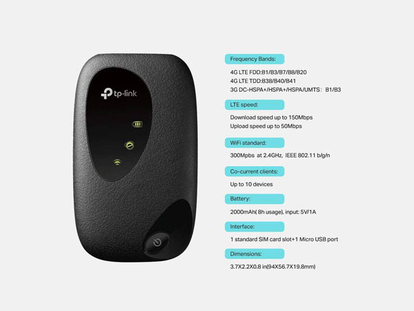 مودم همراه تی پی لینک TP-Link M7200 LTE، انتخابی ایدهآل برای اینترنت سریع و پایدار در هر مکان! با قابلیت پشتیبانی از شبکه 4G LTE و امکان اتصال همزمان تا 10 دستگاه، تجربهای بینظیر از اینترنت را به شما هدیه میدهد. سبک و قابل حمل، مناسب برای سفرها و جلسات کاری. اینترنت همیشه همراه شماست!