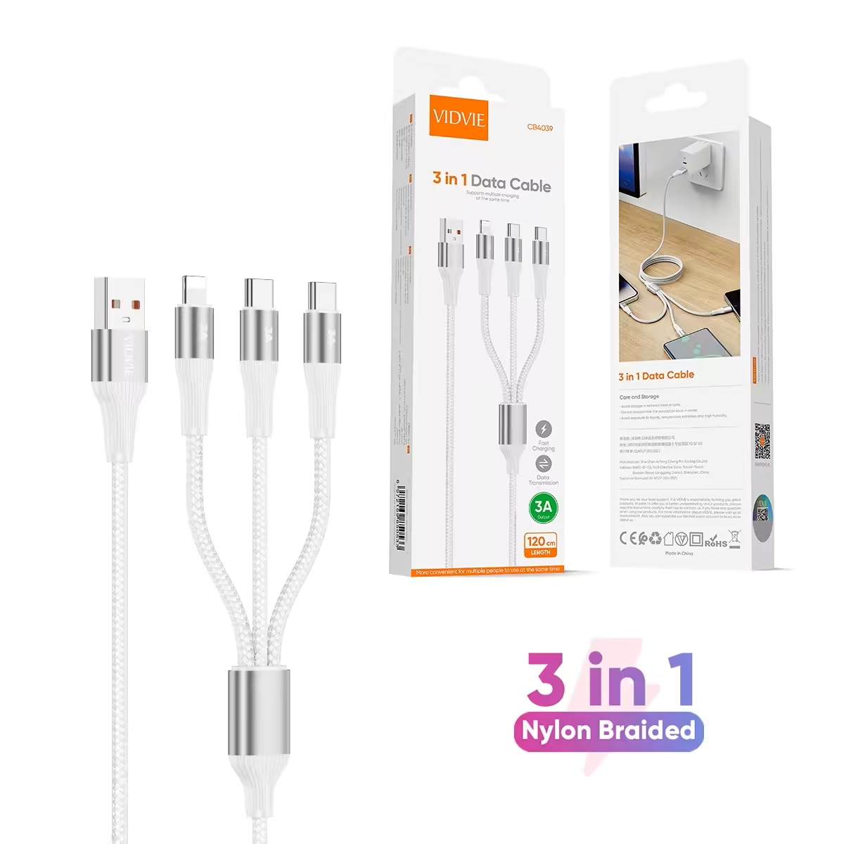کابل 3 در 1 ویدوی مدل cb4039، راهحل نهایی برای شارژ سریع و انتقال داده با کیفیت بالا! با این کابل همهکاره، همزمان گوشی، تبلت و دستگاههای دیگر را با سرعت و کارایی بینظیر شارژ کنید. طراحی مقاوم و طول عمر بالا، این کابل را به انتخاب اول شما تبدیل میکند. همین حالا تهیه کنید و از راحتی بیپایان لذت ببرید!